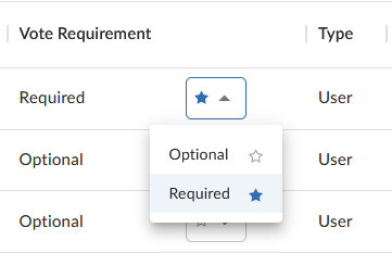 For users, select on of the following vote requirements.