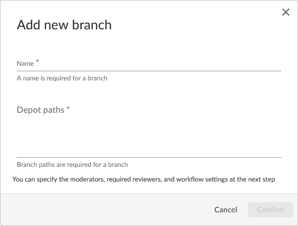 Enter one or more branch paths in the Depot paths field using depot syntax, one path per line. For more information on branch paths, see Example branch paths.